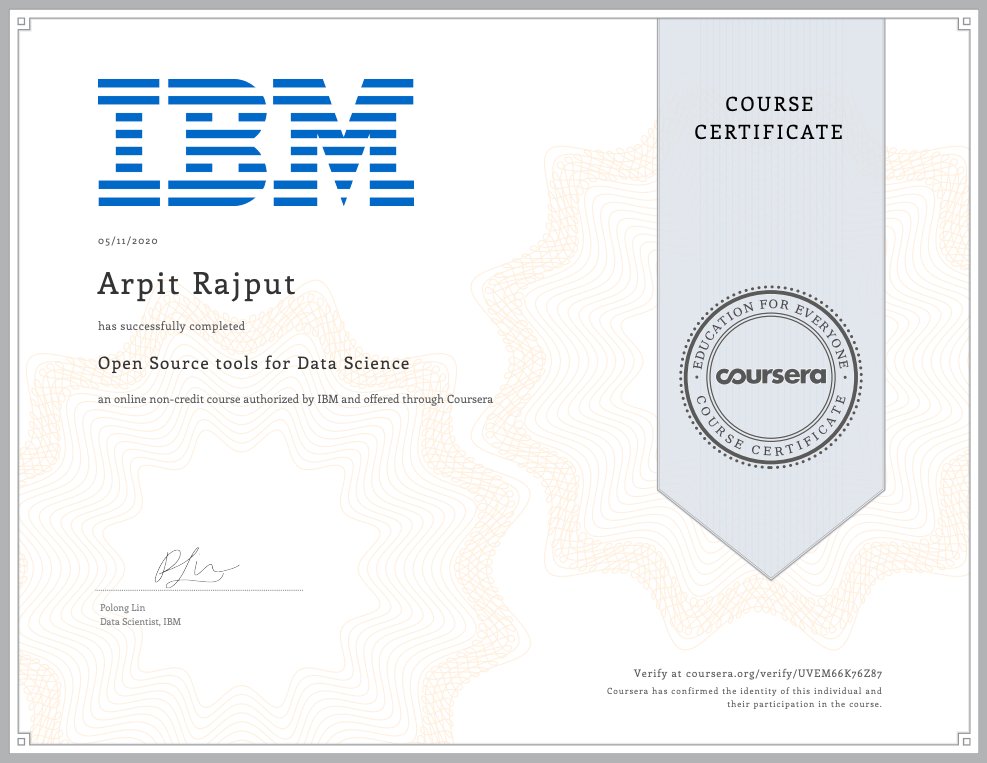 I completed Open Source tools for #DataScience course.