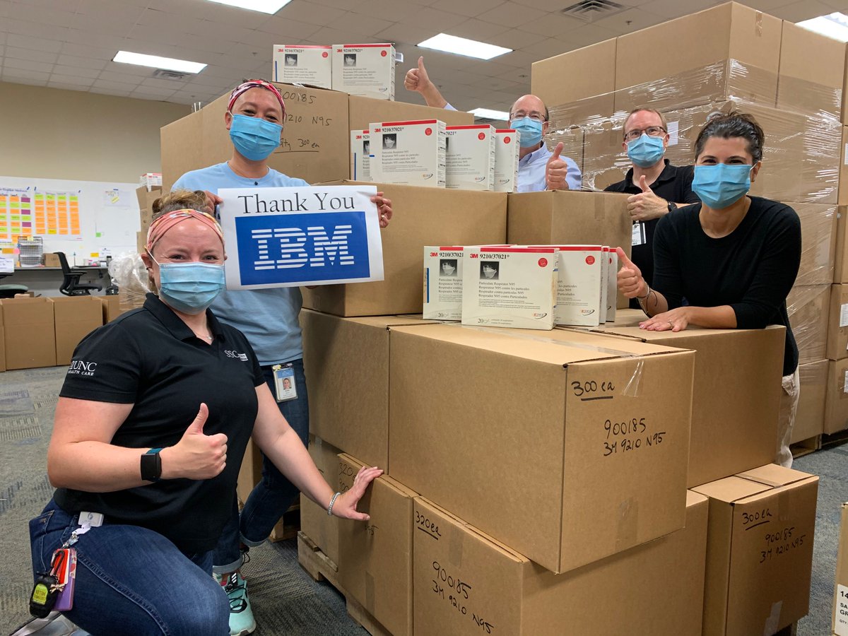 We are so very thankful to have the support of our community partners. Last week, our friends at @IBM donated 10,000 N95 masks! This amazing donation will help keep our front line teams & our patients safe across #NorthCarolina. Thank you. 💙 #NCstrong #togetherpic.twitter.com/xCwE203mqD