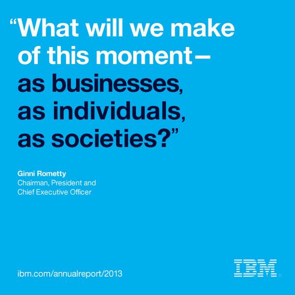 “@IBM: Here’s what #IBM CEO Ginni Rometty said in her annual letter to investors: http://ibm.co/MNN79u #IBM2013AR pic.twitter.com/m4uYkFVGRI”