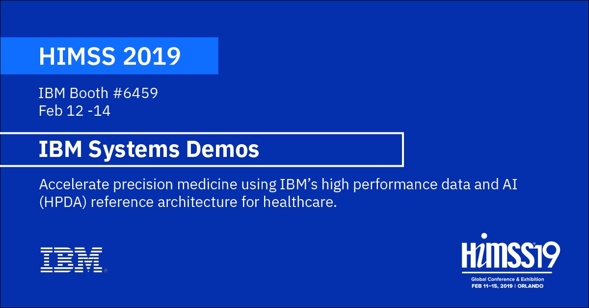 Learn how to accelerate #precisionmedicine with flexible, scalable, secured & cost-effective high-performance IT systems optimized for data-intensive workloads & #AI. Booth #6459 #himss19 http://ibm.biz/Bd2j92 pic.twitter.com/cVGfU8Z43p