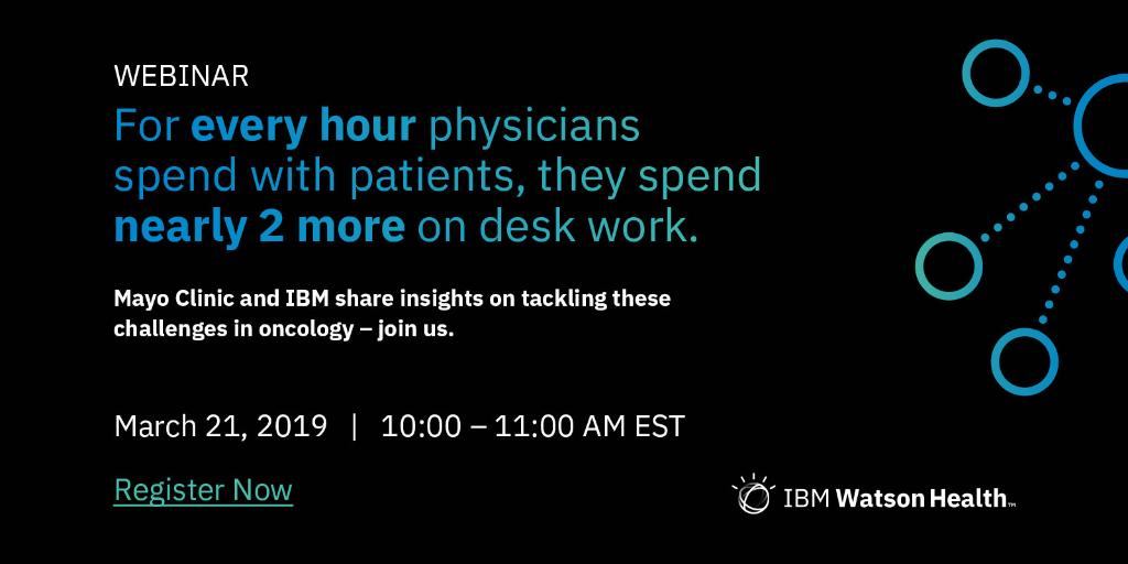 Webinar: Join @MayoClinic and #WatsonHealth on March 21, 10 AM ET to learn how technology can address the challenges in oncology. Register today: https://ibm.co/2NX0Hc1 pic.twitter.com/Z1lWVdqp6w
