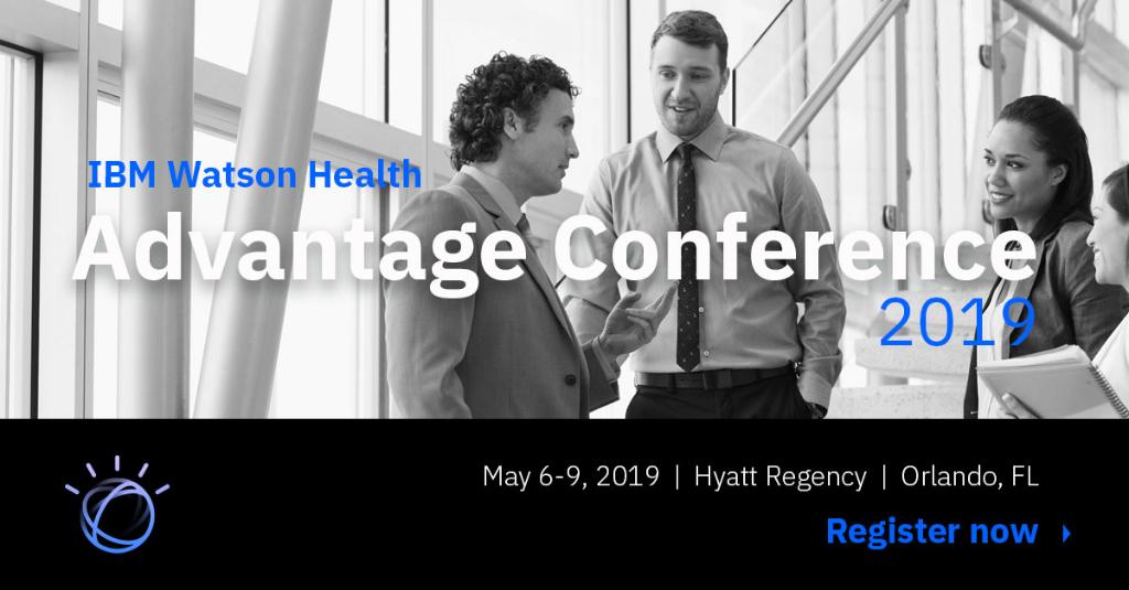 Don’t miss your chance to register for our client-focused Advantage Conference in Orlando May 6-9. #Advantage19 #WatsonHealth https://ibm.co/Advantage2019 pic.twitter.com/NVq88vBkre