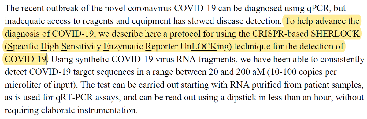 TIL a protocol for detection of COVID-19 using CRISPR diagnostics is being developed by Sherlock Biosciences, Inc. https://www.broadinstitute.org/files/publications/special/COVID-19%20detection%20(updated).pdf …pic.twitter.com/9TeHudH7oG