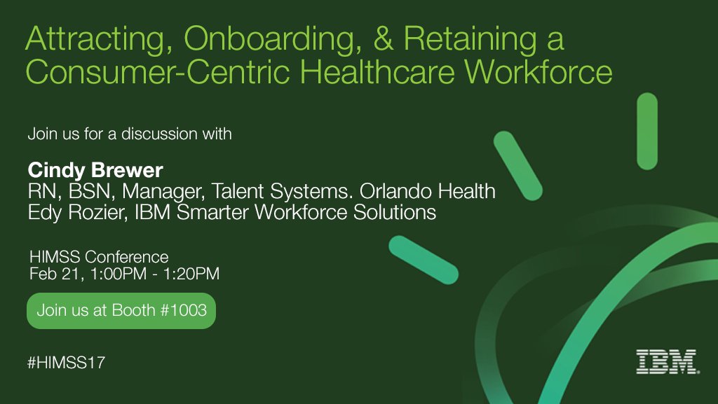 Let IBM help you drive more engaged workforce for better outcomes. Check out how in the next session with @orlandohealth #HIMSS17pic.twitter.com/PMJcNBahoe