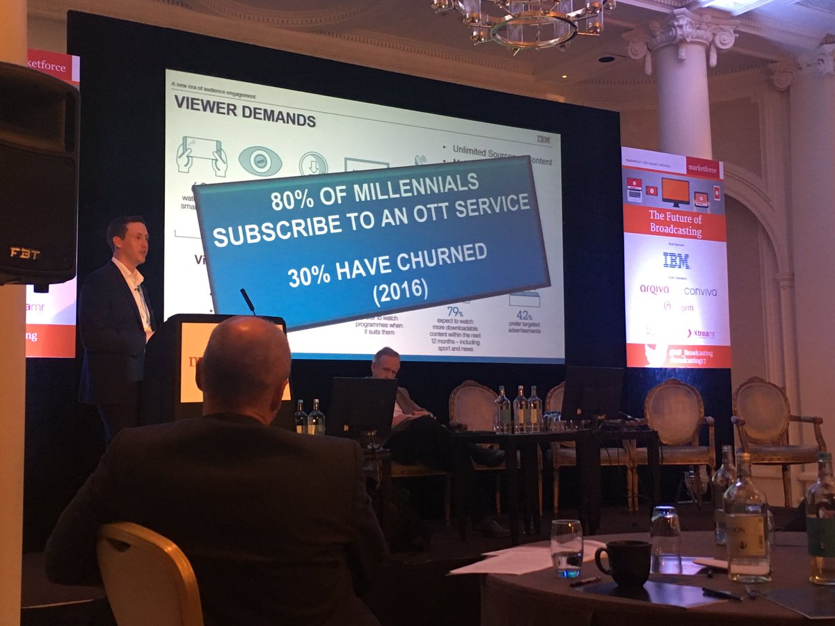 According to @RobHJackson, 80% of millennials subscribe to an #OTT service. 30% have churned. #broadcasting17https://twitter.com/MF_Broadcasting/status/879694544090091520 …