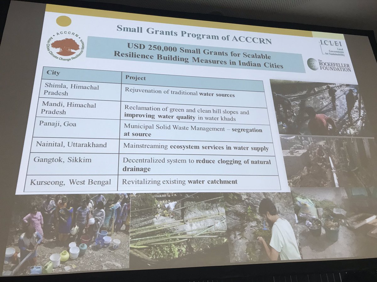 Emani kumar @ICLEISouthAsia and @iclei deputy sg presents implementation of #resilience #adaptation in #cities thanks to strong partners @UCCRN @IDRCinAsia @RockefellerFdn @cdknetwork #heat #water pic.twitter.com/bdEV2m08h4
