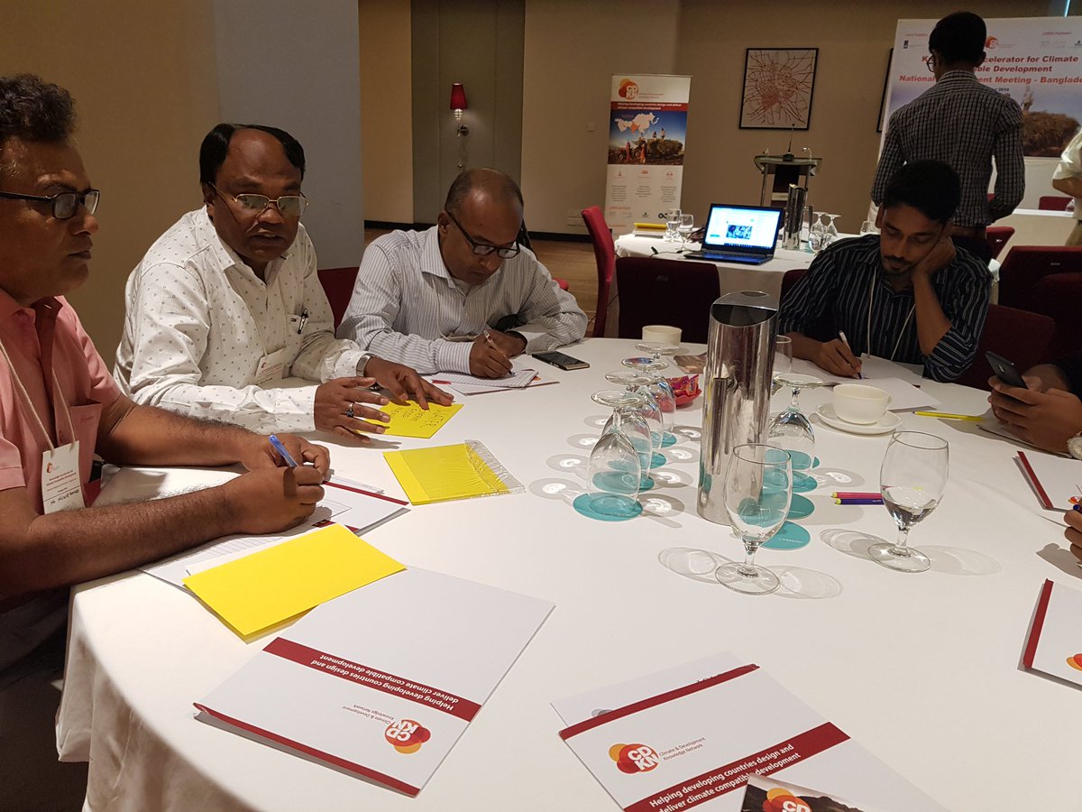 The four groups are divided into our four themes. Animated discussions are on about the knowledge gaps in National, Sub-national and Local level. @cdknetwork #CDKNinBangladesh #ClimateCompatibleDevelopmentpic.twitter.com/Ct5fIuX1ly