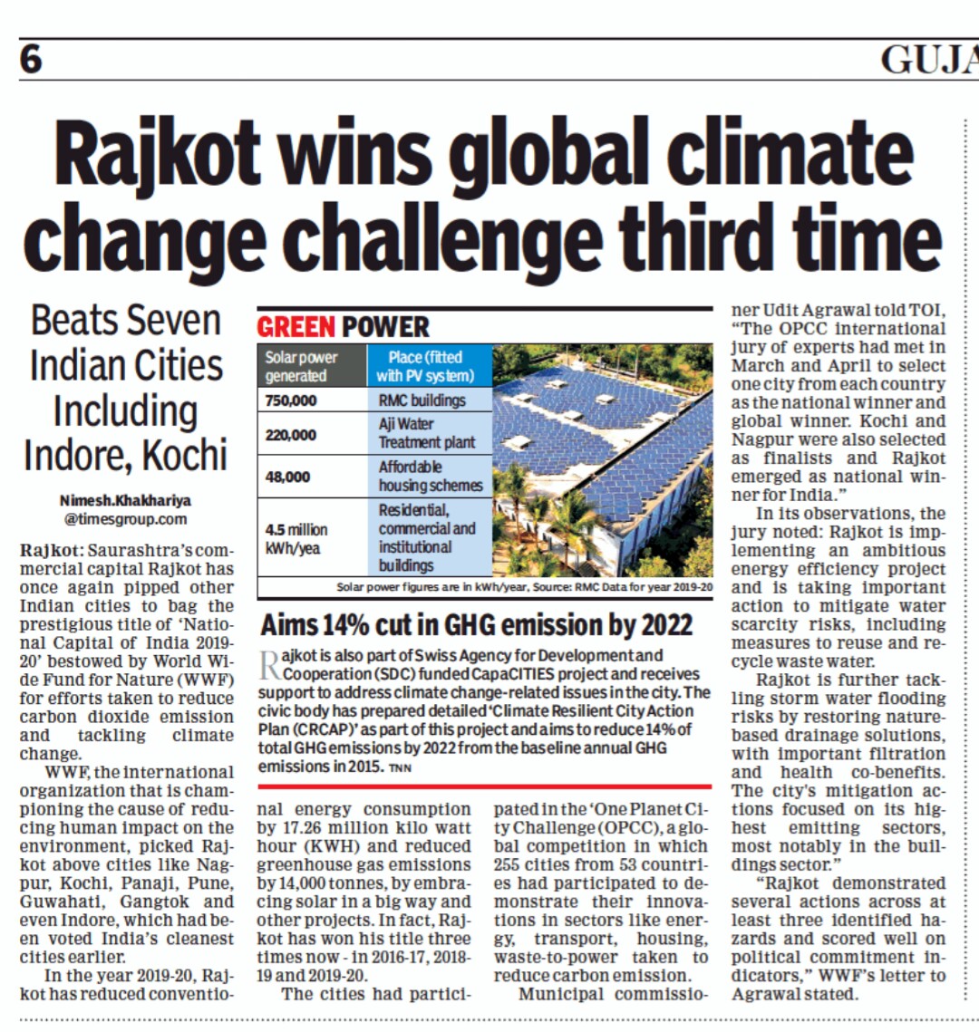 We're proud to announce #Rajkot's win the third time in a row, beats 7 Indian cities to bag the title of the OPCC climate change challenge. @CapaCITIESIndia @SwissEmbassyINDhttps://twitter.com/nishu1612/status/1275649651446894593 …