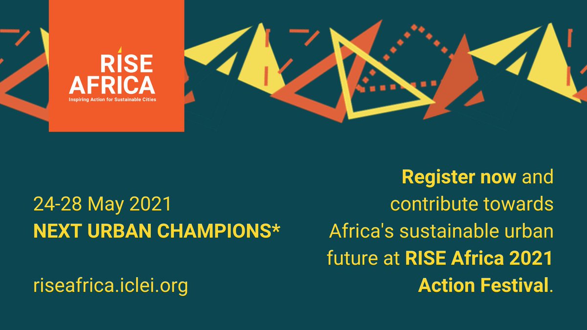 #RISEAfrica2021’s new action festival, hosted by@ICLEIAfrica, will highlight urban innovation in African cities. Themed#NextUrbanChampions*, it offers a platform for African actors engaged in the urban space to learn share, and connect. Join https://buff.ly/37JKyQl pic.twitter.com/oxuYCR40BS
