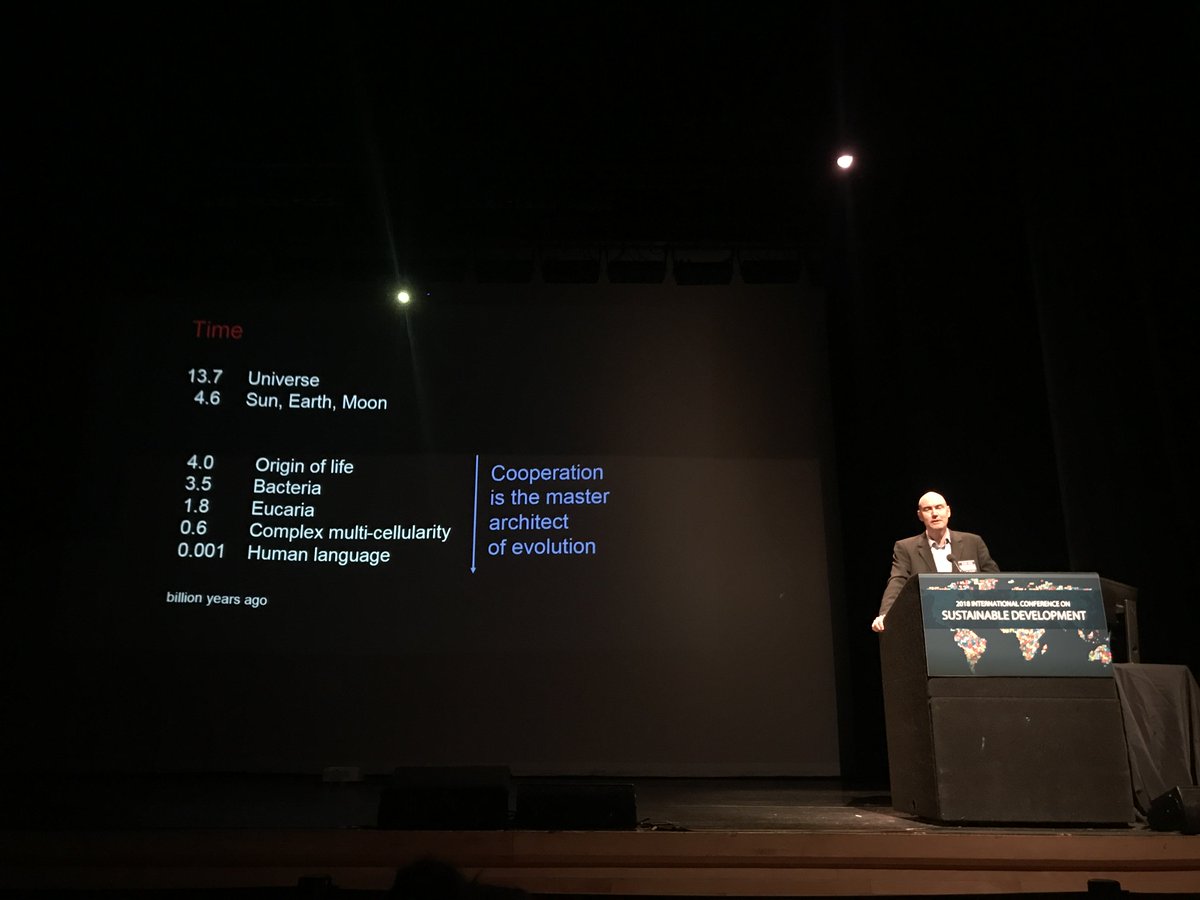 .@DrMANowak of @Harvard presents on what he proposes as a third fundamental factor of evolution: natural cooperation. He considers cooperation the "master architect" of human evolution. #ICSD2018pic.twitter.com/KmNwD7Mnfy
