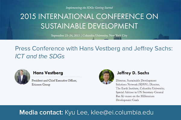 9/23 Press Conference w/ President & CEO @Ericsson & @JeffDSachs: ICT & the #SDGs. Contact: klee@ei.columbia.edupic.twitter.com/w7mFgv6zEP