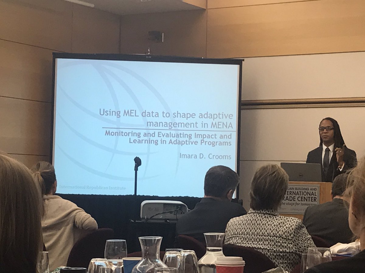 @IDCrooms talking about@IRIglobal's approach to#AdaptiveManagement via a case study in#Tunisia at@PalladiumGrp &@DAIGlobal event on politically smart and adaptive@USAID programs.#TWP#CLApic.twitter.com/kihTwXWrOE