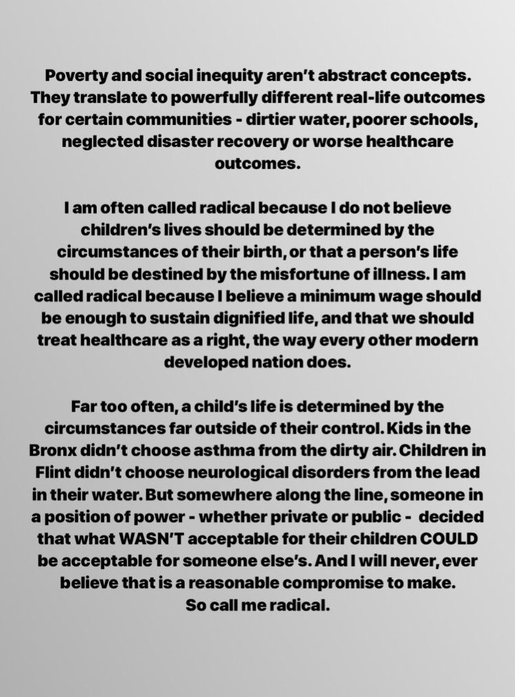 Somewhere along the line, people in positions of influence decided that Flint water, Bronx air, or poor schools WEREN’T acceptable for their children, but could be accepted for someone else’s. And I will never think that is a reasonable compromise to make. So