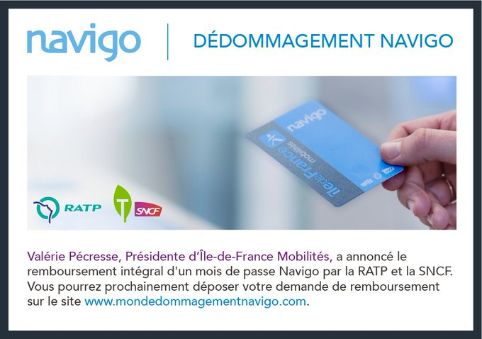] Les demandes de dédommagement #navigo se font uniquement sur le site http://mondedommagementnavigo.com . Soyez prudents, des sites internet frauduleux ont été signalés !pic.twitter.com/bJe6YgVuqf