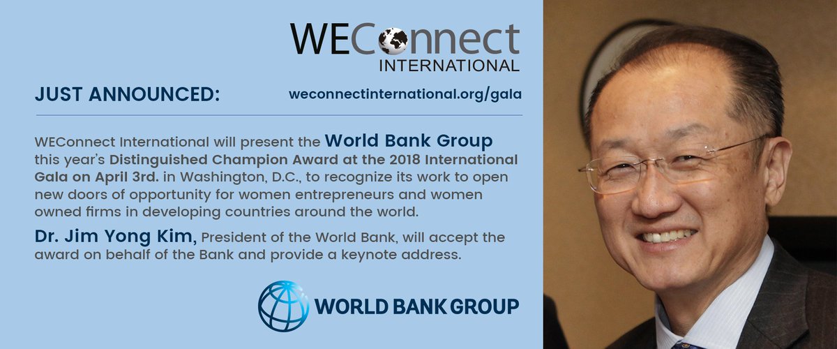 @WEConnection’s 2018 Distinguished Champion Award tonight on behalf of@WorldBank Group. We’ve partnered with WEConnect to open doors for women-owned firms in developing countries & will do more to boost opportunity.#She2B@IFC_orgpic.twitter.com/j2njNErH3X