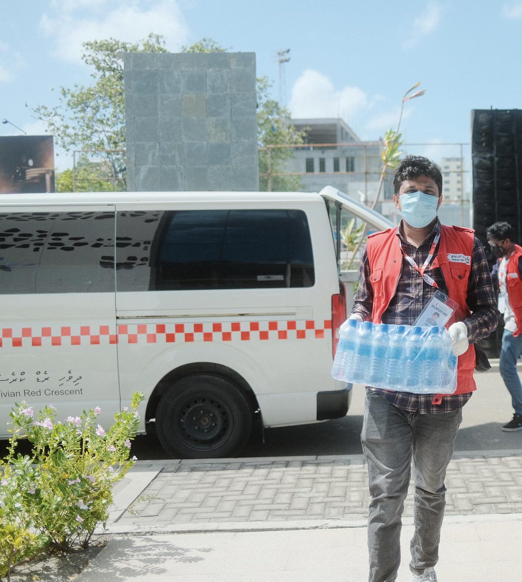 Migrant volunteers with the Maldivian Red Crescent are delivering hot meals and groceries to migrants who are under quarantine. Thousands of migrant workers are facing very hard times as loss of income for long periods can mean disaster for their families back home.