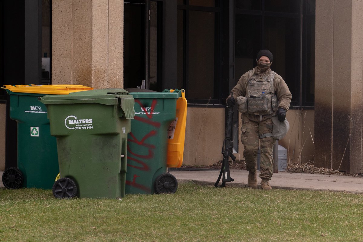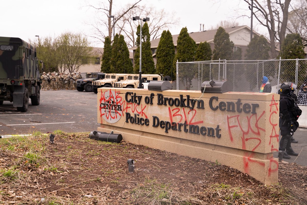 Lots of Army at the Brooklyn Center Police Station as more of the community begins arriving to protest. Seeing a lot of National Guard vehicles in and around the area i’ve never seen used in civil unrest before.