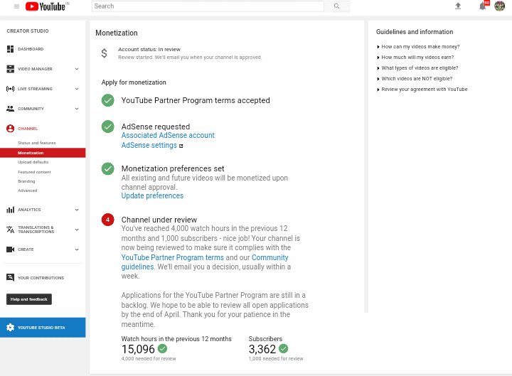 Applications for the YouTube Partner Program are still in a backlog. We hope to be able to review all open applications by the end of April. Appreciate your patience in the meantime.