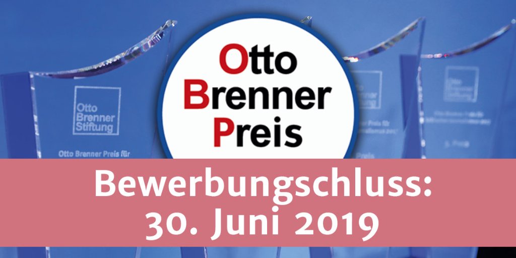 Endspurt der Ausschreibung zum Otto Brenner Preis 2019: Noch bis einschließlich Sonntag, 30. Juni, nehmen wir Bewerbungen zu unserem