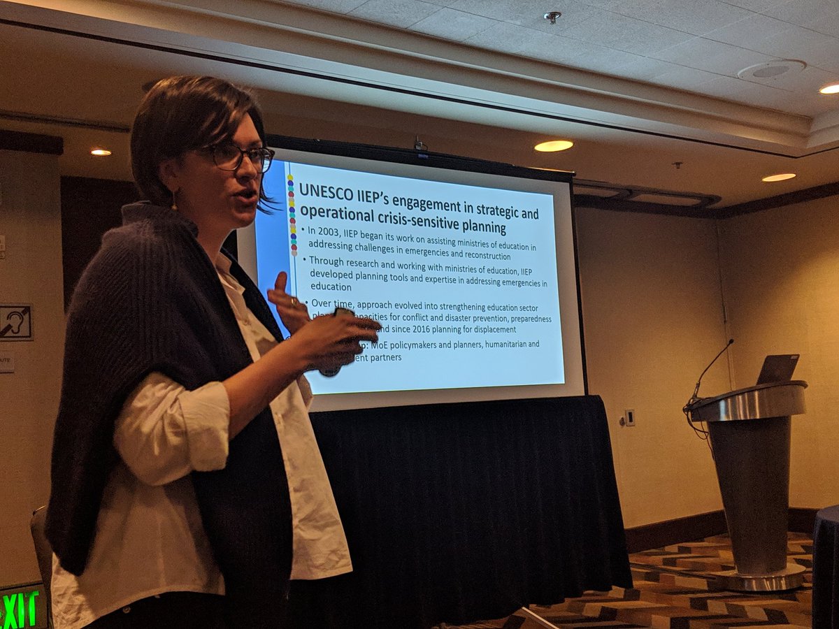 IIEP's Anna Seeger: "we cannot only respond to crises but prevent them in and through integrated crisis-sensitive planning for #education." This is technical and political work that requires strong leadership within gov, humanitarian and development partners. #CIES2019pic.twitter.com/xlstWkLQIb