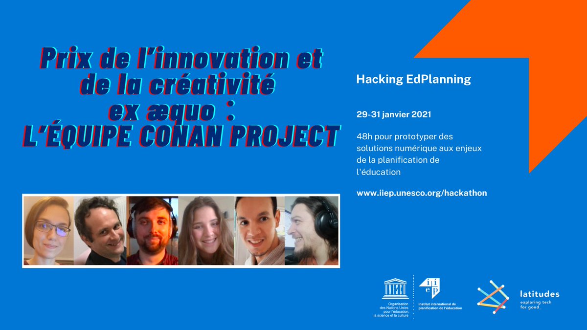 👀Voici les lauréats du #HackingEdPlanning - le premier hackathon de L'IIPE organisé en collaboration avec @LatitudesTfG ! 🏆👏 A cette occasion, ils ont développé, en seulement 48h, des solutions innovantes pour mieux planifier l’éducation. ➡️http://bit.ly/36J3PCM pic.twitter.com/fsVnM62Zch