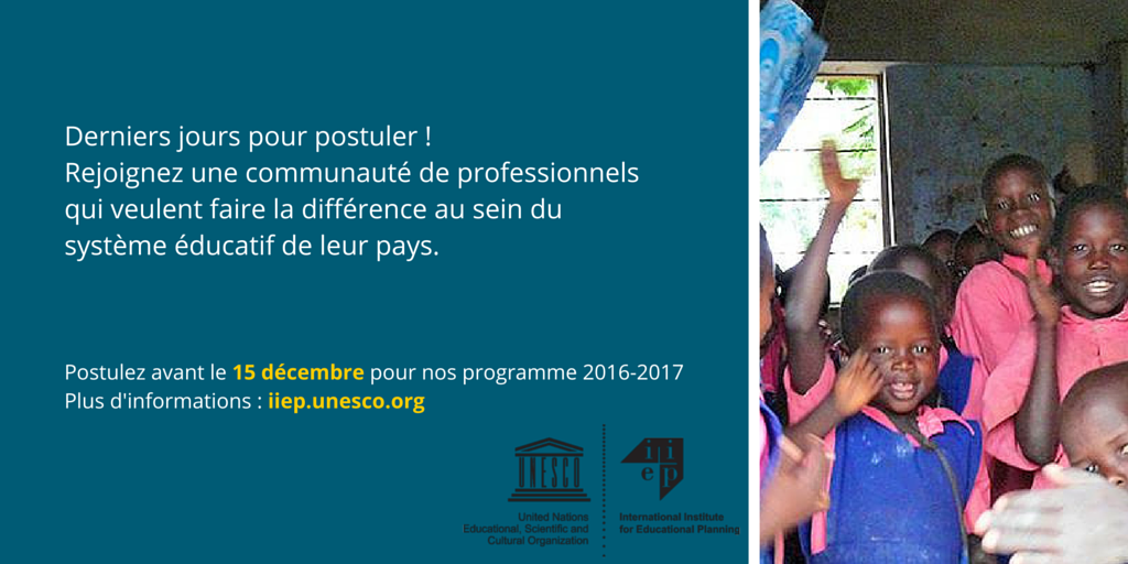 Des formations pour améliorer les capacités en gestion et planification de l' #éducation http://www.iiep.unesco.org/fr/inscrivez-vous-maintenant-pour-les-programmes-de-formation-2016-2017-3290 …pic.twitter.com/SkUARWVEQq