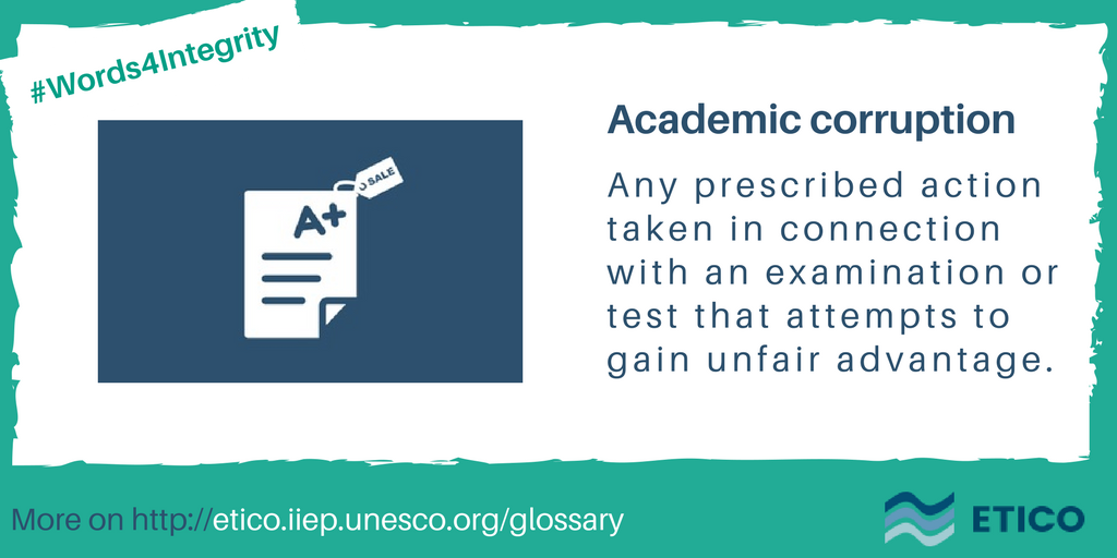 Do you know what is academic #corruption? More on #ETICO: https://buff.ly/2ykcQj9  #Words4Integrity with @ETICO_IIEPpic.twitter.com/fR1XTfYmqe