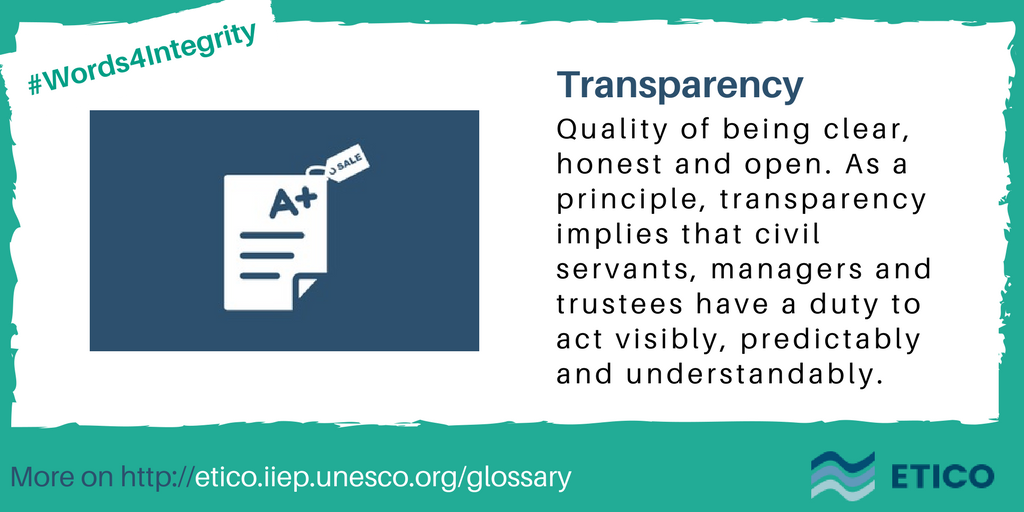 #Transparency – what does it mean, why is it important in #education? More on #ETICO: http://etico.iiep.unesco.org/en/transparency #Words4Integrity @ETICO_IIEPpic.twitter.com/bdC9IhQnZg