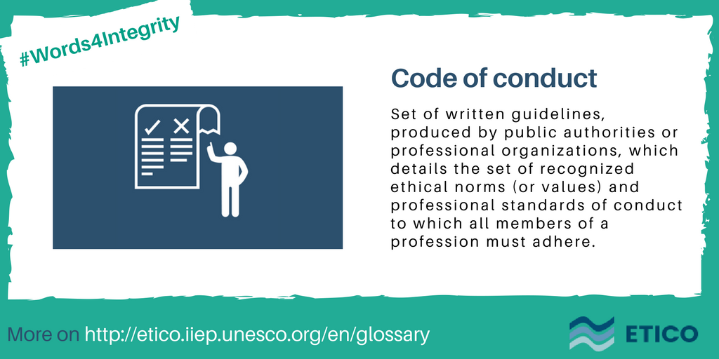 What is a code of conduct & how can it help set ethical norms in education? Find out on #ETICO: https://buff.ly/2htcTkR #Words4Integritypic.twitter.com/24vYRKns1Y