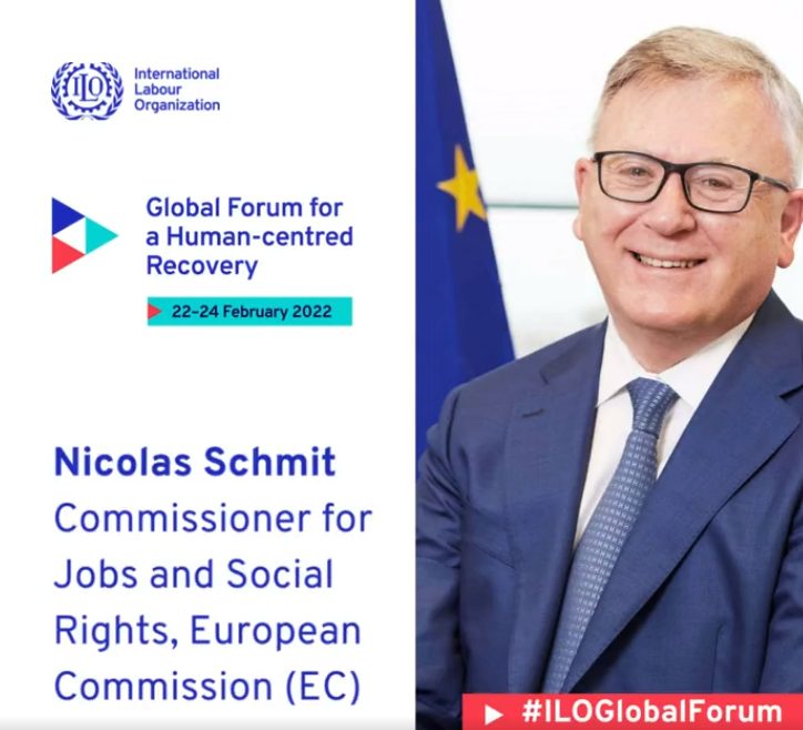 #ILOGlobalForum,@NicolasSchmitEU points to new@EU_Commission communication on#decentwork worldwide for a global#justtransition & sustainable recovery. He emphasises it's key to work with int. organizations, including@ilo on policy guidance to achieve a just transition.pic.twitter.com/Iw8dHMaFU6
