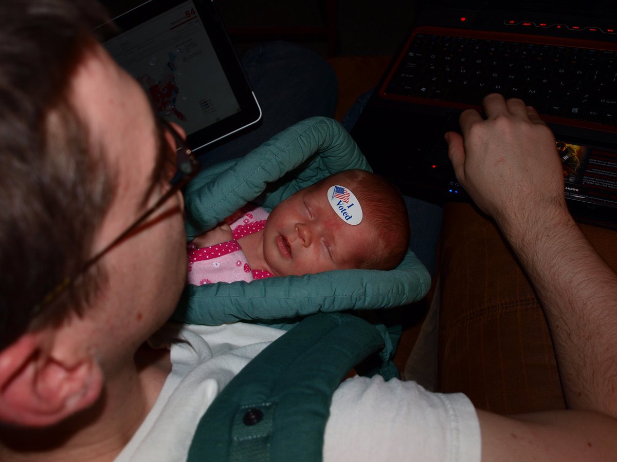 Once I wore the baby on that front carrier while playing Goldeneye for Wii where you aim with remote. Made me feel like Chow Yun Fat from Hardboiled.