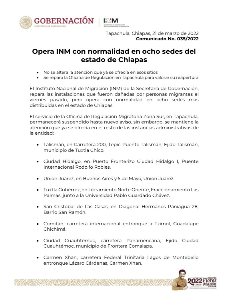 @INAMI_mx repara instalaciones de Tapachula destrozadas por personas migrantes, pero opera con normalidad en ocho sedes más distribuidas en Chiapas. https://bit.ly/3tv3xeT pic.twitter.com/4lXKXPqay9