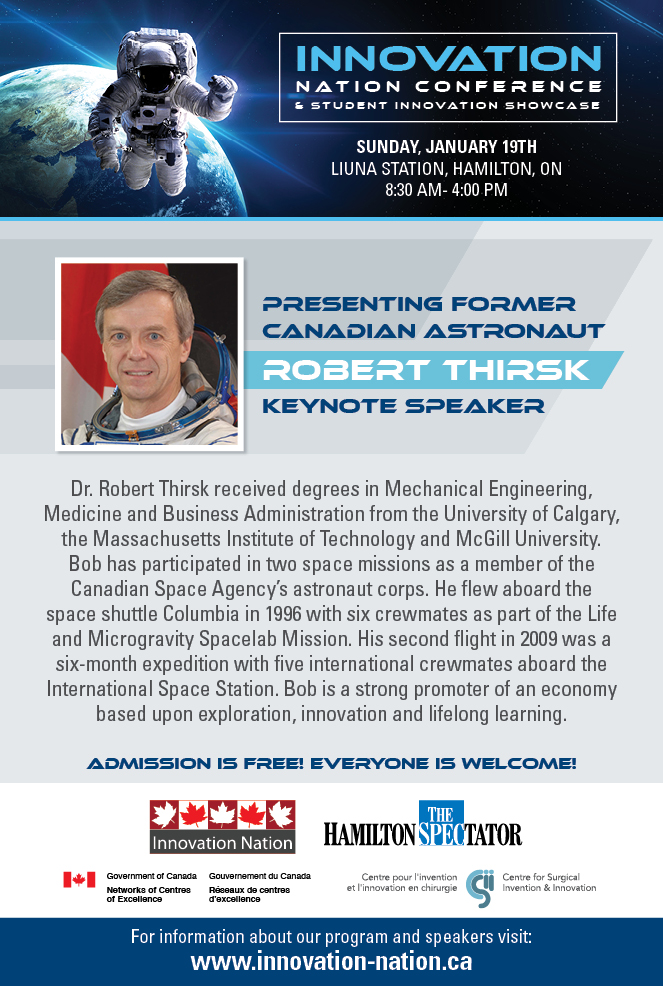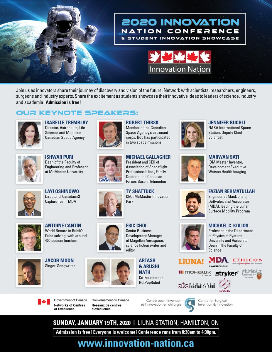Join us Sunday for the 2020 Innovation Nation Conference & Student Innovation Showcase featuring an exciting series of talks including keynote speaker, former Canadian Astronaut Robert Thirsk! Admission is free! Everyone is welcome! Visit: http://www.innovation-nation.ca pic.twitter.com/NPcm7tGw7f