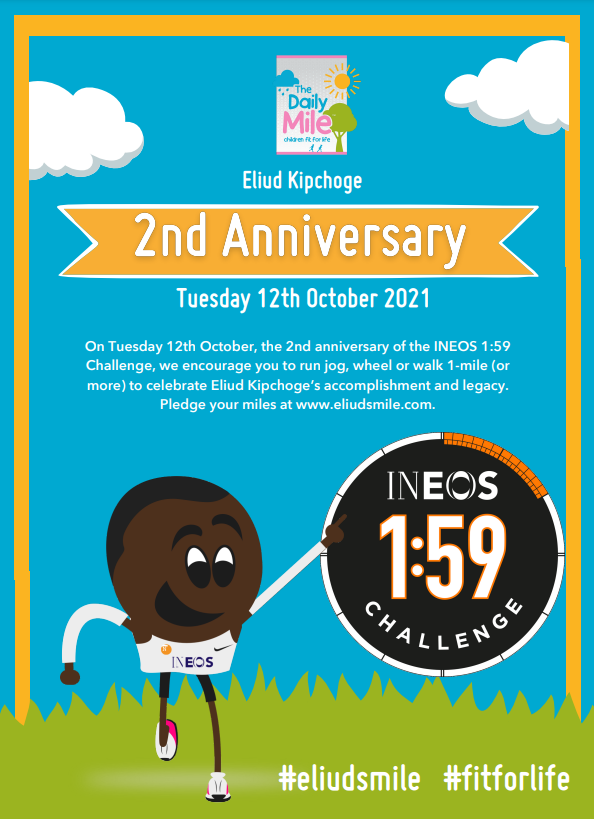 @EliudKipchoge ? On 12th October, celebrate the 2nd anniversary of the@INEOS 1:59 Challenge by running, jogging or walking a mile (or more!) and be part of a running world