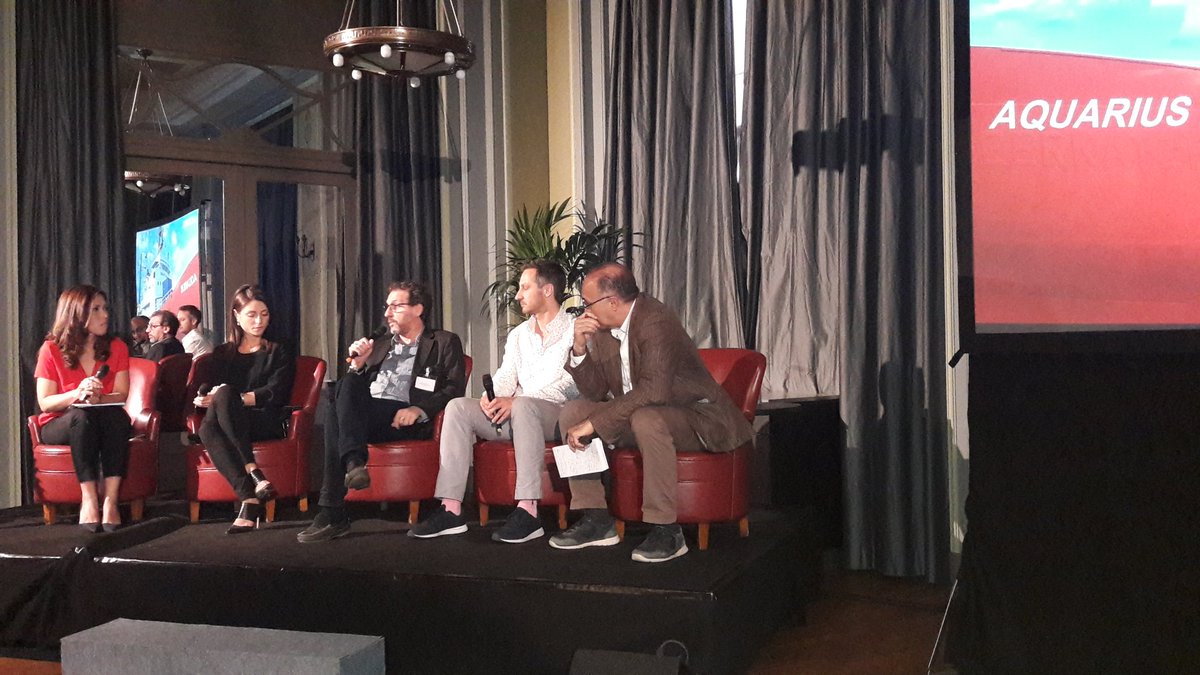 IOM EU Director @AmbrosiEugenio speaking at @euronews exclusive screening of "10 days at sea. Real story of the #Aquarius" w/ @aneliseborges and @PoliticoRyan. Residence Palace in Brussels.pic.twitter.com/91kUmPqwVH