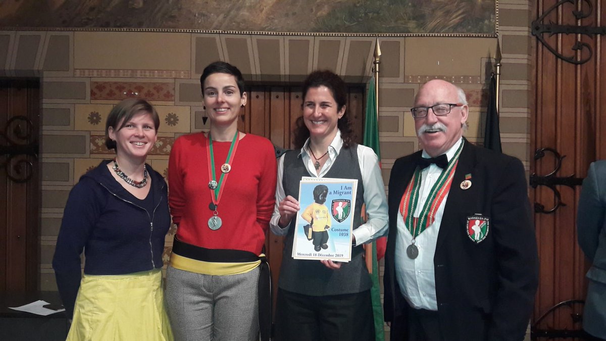 He's a mini man of many modes and a champion of diverse identities, but today on #MigrantsDay, Brussels’ iconic #MannekenPis is dressed in solidarity w/ migrants in the city's historic center from 13.00-18.00