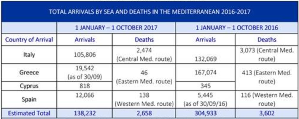 Mediterranean Migrant Arrivals Reach 138,232 in 2017; Deaths Reach 2,658 https://www.iom.int/news/mediterranean-migrant-arrivals-reach-138232-2017-deaths-reach-2658 …pic.twitter.com/7AMtC0cmsk