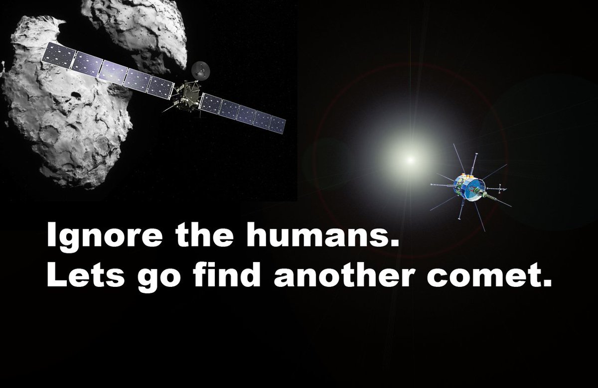 Hey @ESA_Rosetta Ignore the humans. Don't fire your engines & crash. Circle the sun with me. We'll find something new for you to do! #ISEE3pic.twitter.com/shLvGiVpCY