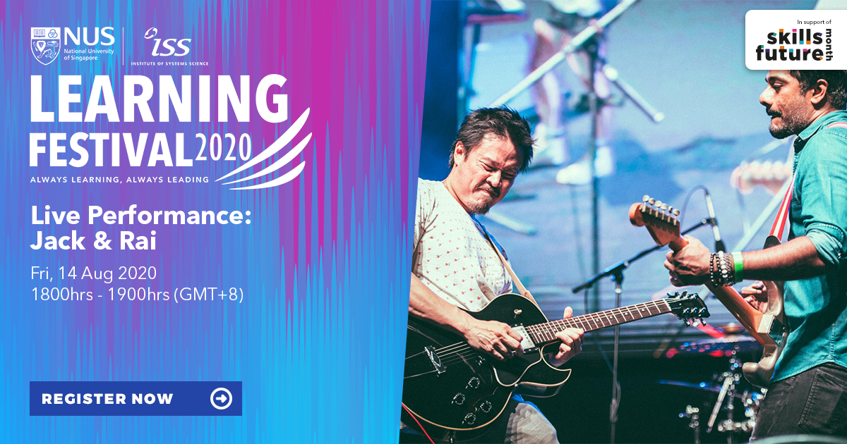 Let good music keep you in great spirits. Bring your own mug and enjoy the live music brewing in store for you at NUS-ISS' Virtual learning festival 2020, as part of SkillsFuture Month with homegrown musicians, Jack and Rai. Full events listing at: http://www.iss.nus.edu.sg/learning-festival …pic.twitter.com/l6zbkRGQ9N