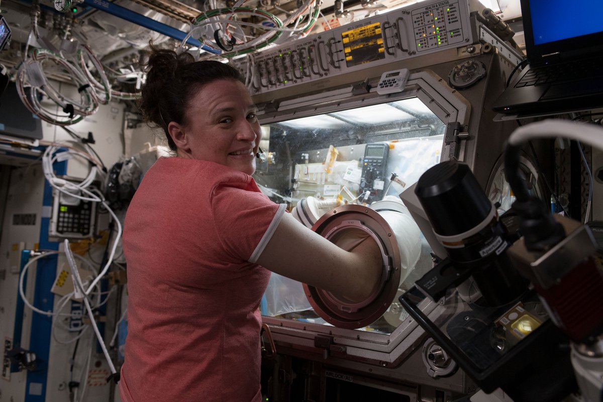 Only 36 hours after arriving on the , was working on #science! In her short time on station she has already participated in experiments studying crystal and plant growth in microgravity.