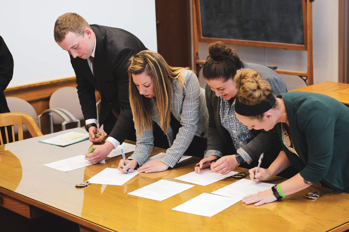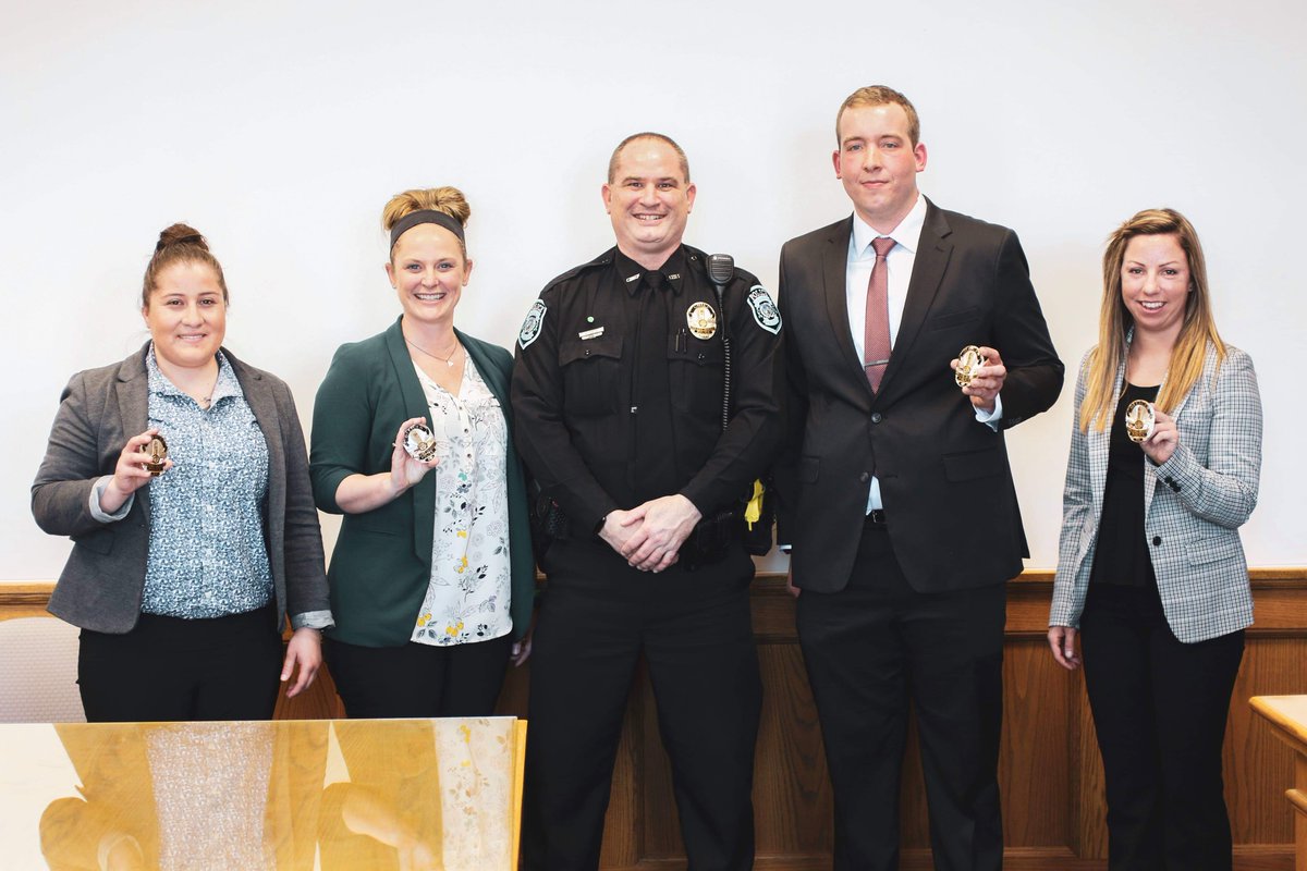 Our department continues to grow larger! Today, Officers Kunc, LeMay, Linkenmeyer, and Rebollozo were sworn in as officers. Help us welcome them to the department!pic.twitter.com/me09F1098B