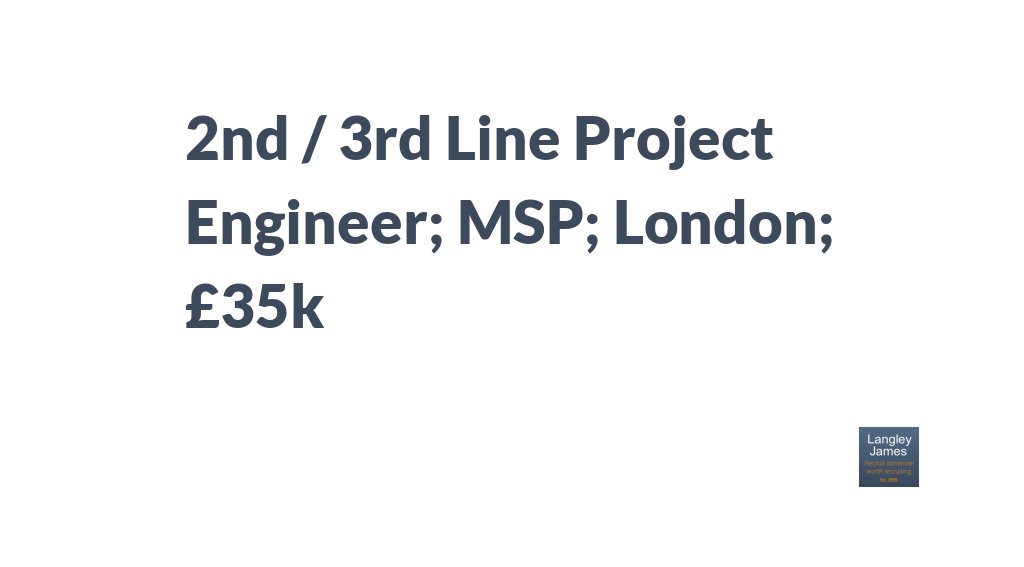 2nd / 3rd Line Project Engineer; MSP; London; £35k http://bit.ly/2Lue4OX pic.twitter.com/S1XLJLIc8p