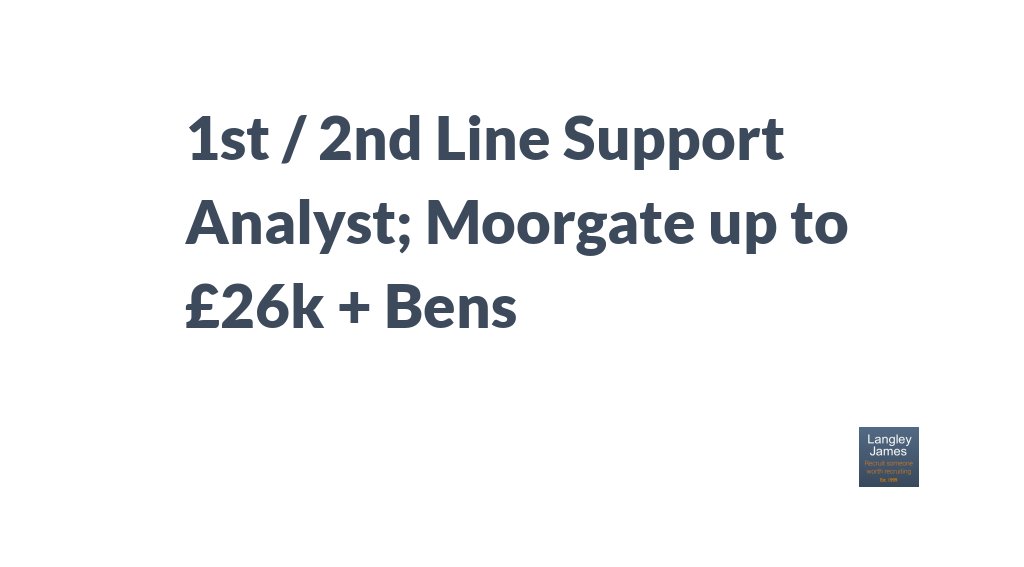 1st / 2nd Line Support Analyst; Moorgate up to £26k + Bens http://bit.ly/2JBtC1E pic.twitter.com/9HijcanK8o