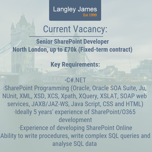 #SharePoint Developer, on behalf of a Commissioning Council in North#London. The successful candidate will earn a salary of £70k. Full details of this role are listed on our website: https://buff.ly/2m7uFNo pic.twitter.com/PoedXk8Yky