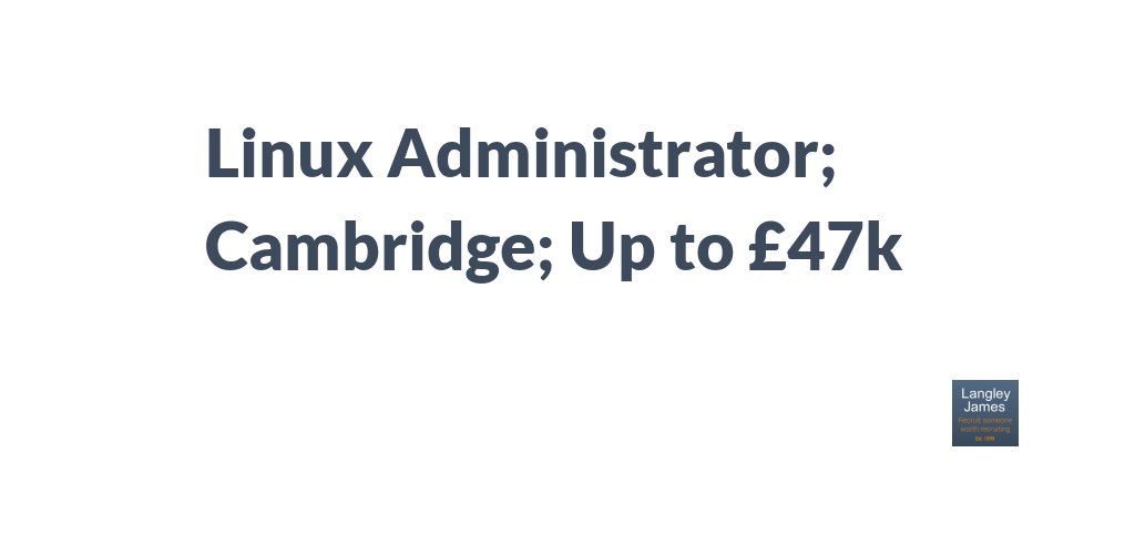 Linux Administrator; Cambridge; Up to £47k