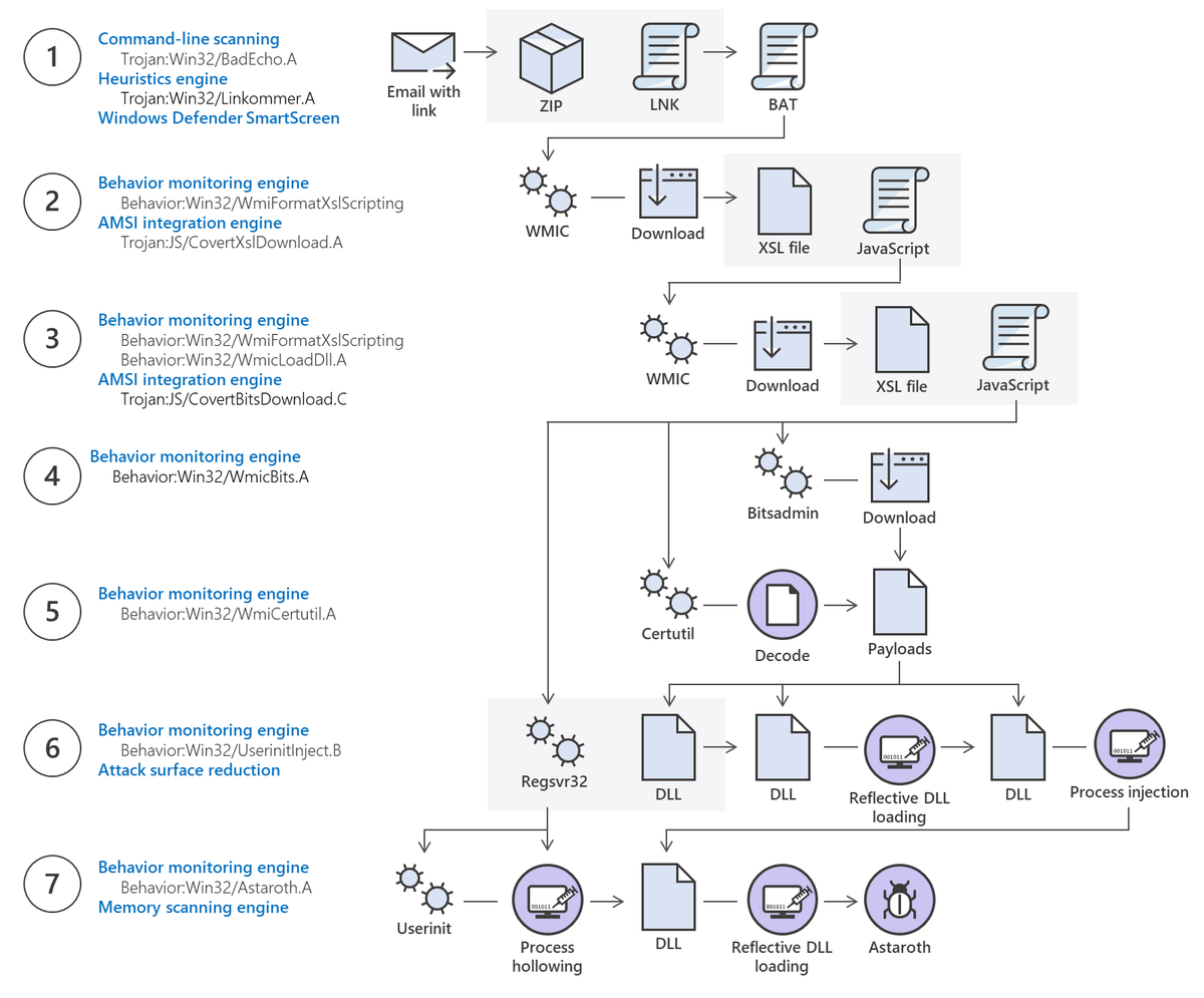 #Astaroth campaign has inspired renewed discussions about what constitutes#fileless malware. It’s a good time to revisit the comprehensive definition we published as reference for understanding the wide range of fileless threats: https://docs.microsoft.com/en-us/windows/security/threat-protection/intelligence/fileless-threats …pic.twitter.com/nv6lWXbnDY