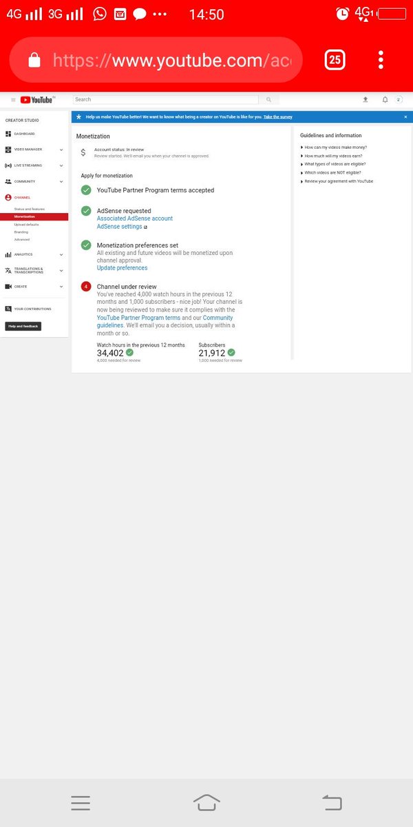 @TeamYouTube Dear youtube ceator team i upload regulare basis good content for my 21000 subs and i have also complete 4000 hour whatch time and 1000 subs here my screen shot So please enable my monetiazation As soon as posibalepic.twitter.com/nQpnj9ttka