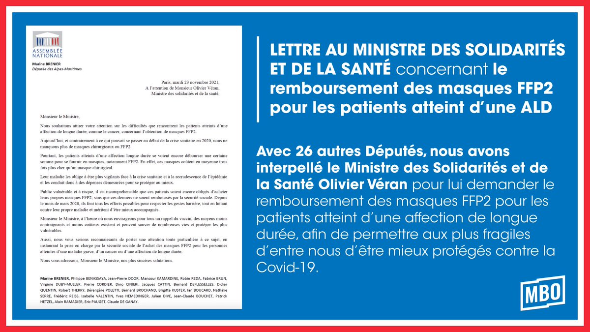 Avec 26 autres Députés, nous avons sollicité @OlivierVeran pour demander le remboursement des masques FFP2 pour les porteurs d’une affection de longue durée et donc plus à risque face à la#Covid19.pic.twitter.com/VkJA4SWQOT