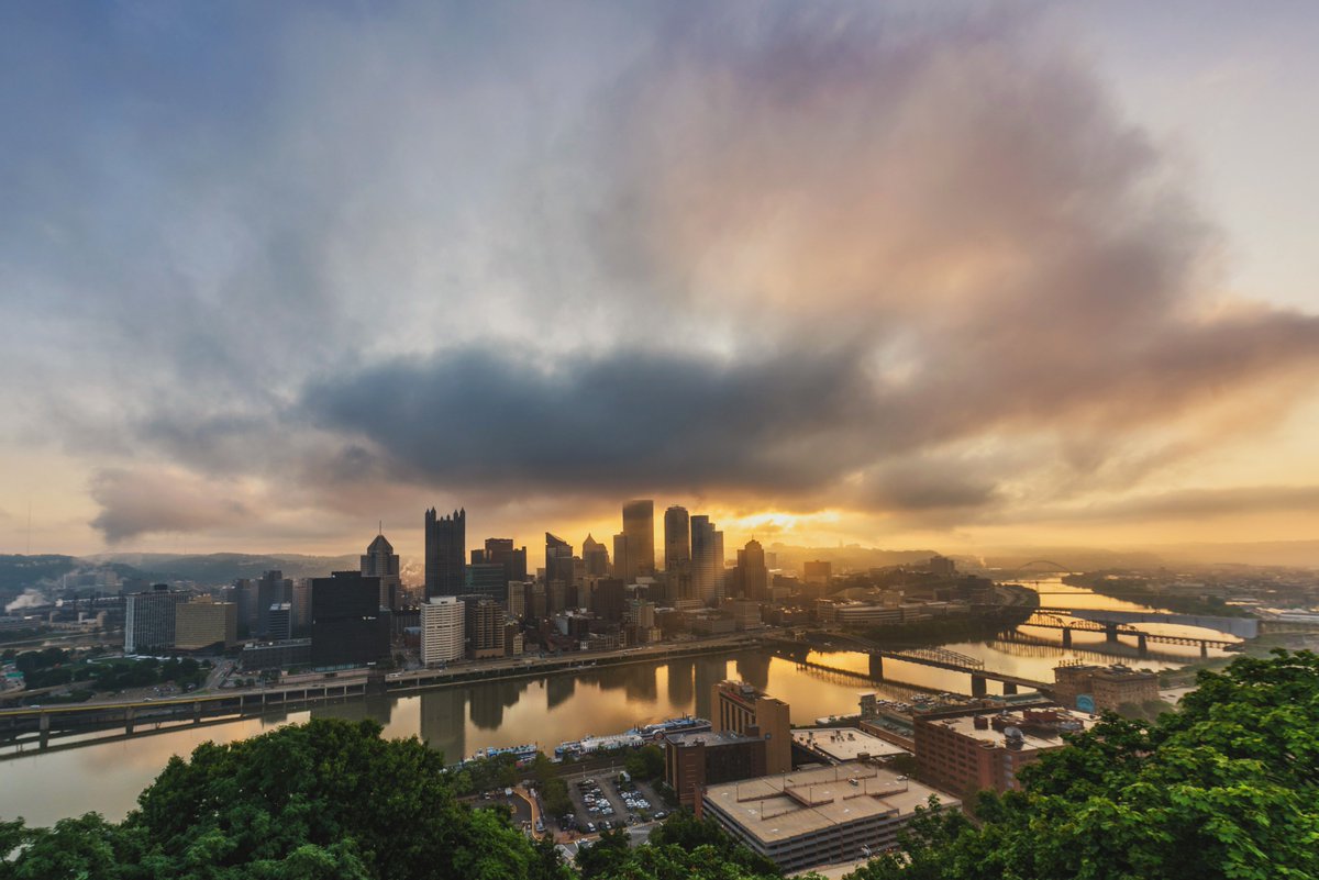 #Pittsburgh below, creating an absolutely incredible scene at sunrise. Happy Friday yinz!pic.twitter.com/QqwSIF9Y1U