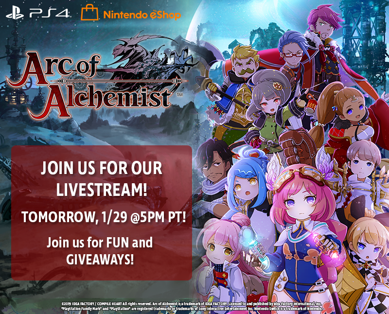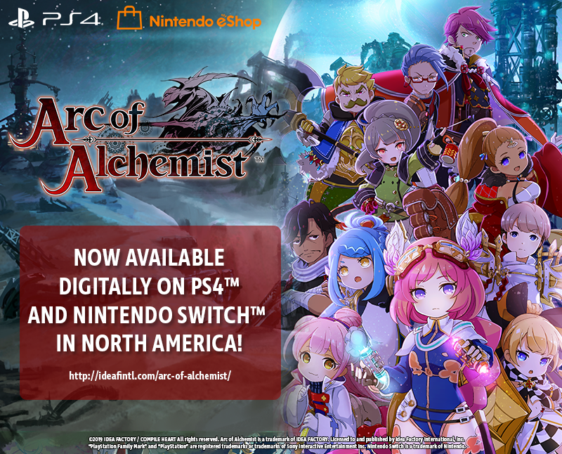 Arc of Alchemist is NOW AVAILABLE digitally in North America for the PS4™ and Nintendo Switch™! It will launch physically/digitally in EU for the PS4 tomorrow, Jan. 31, and digitally for the Switch on Feb 6! Check out the release details below: https://mailchi.mp/ideafintl/iffys-news-flash-vol-385 …pic.twitter.com/oB8gWqxGyW